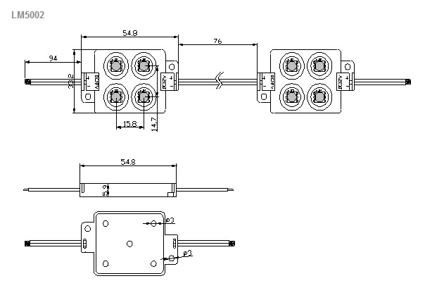 LED PVC module LM5002 4L 12V 1.06W IP65 albastru